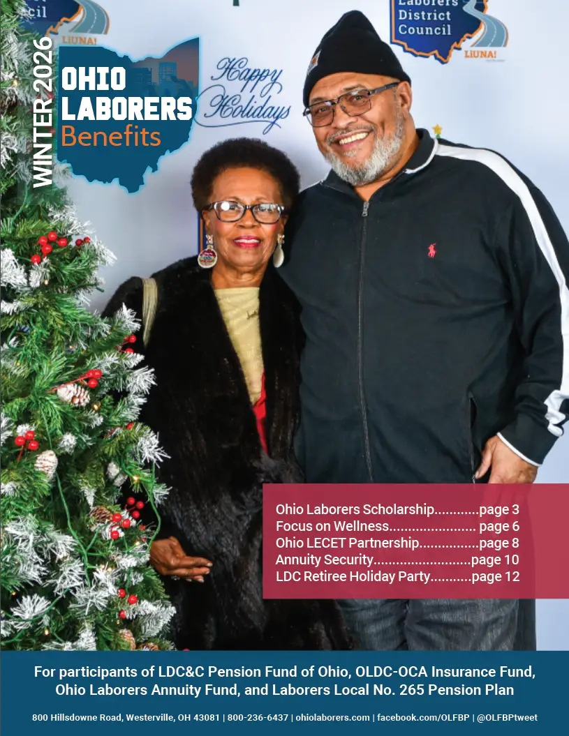 Ohio Laborers Benefits newsletters Current Issue Winter 2026Issue 1 Past Issues Winter 2025Issue 1 Summer 2025Issue 2 Autumn 2025Issue 3 Winter 2024Issue 1 Spring 2024Issue 2 Winter 2023Issue 1 Spring 2023Issue 2 Autumn 2023Issue 3 Spring 2022Issue 1 Autumn 2022Issue 2 Winter 2021Issue 1 Summer 2021Issue 2 Autumn 2021Issue 3 Winter 2020Issue 1 Spring 2020Issue 2 Summer 2020Issue 3 Autumn 2020Issue 4 Winter 2019Issue 1 Summer 2019Issue 2 Autumn 2019Issue 3 Spring 2018Issue 1 Fall 2018Issue 2 Spring 2016Issue 1 Summer 2017Issue 1 Fall 2017Issue 2 Summer 2015Issue 1 Fall 2015Issue 2 Summer 2014Issue 1 Fall 2014Issue 2 March 2013Issue 1 Summer 2013Issue 2 Fall 2013Issue 3